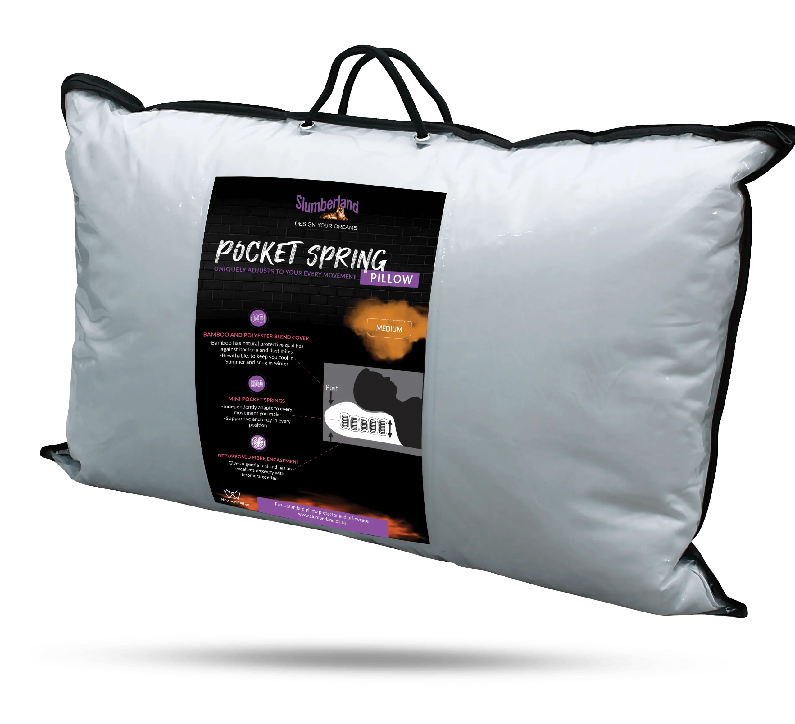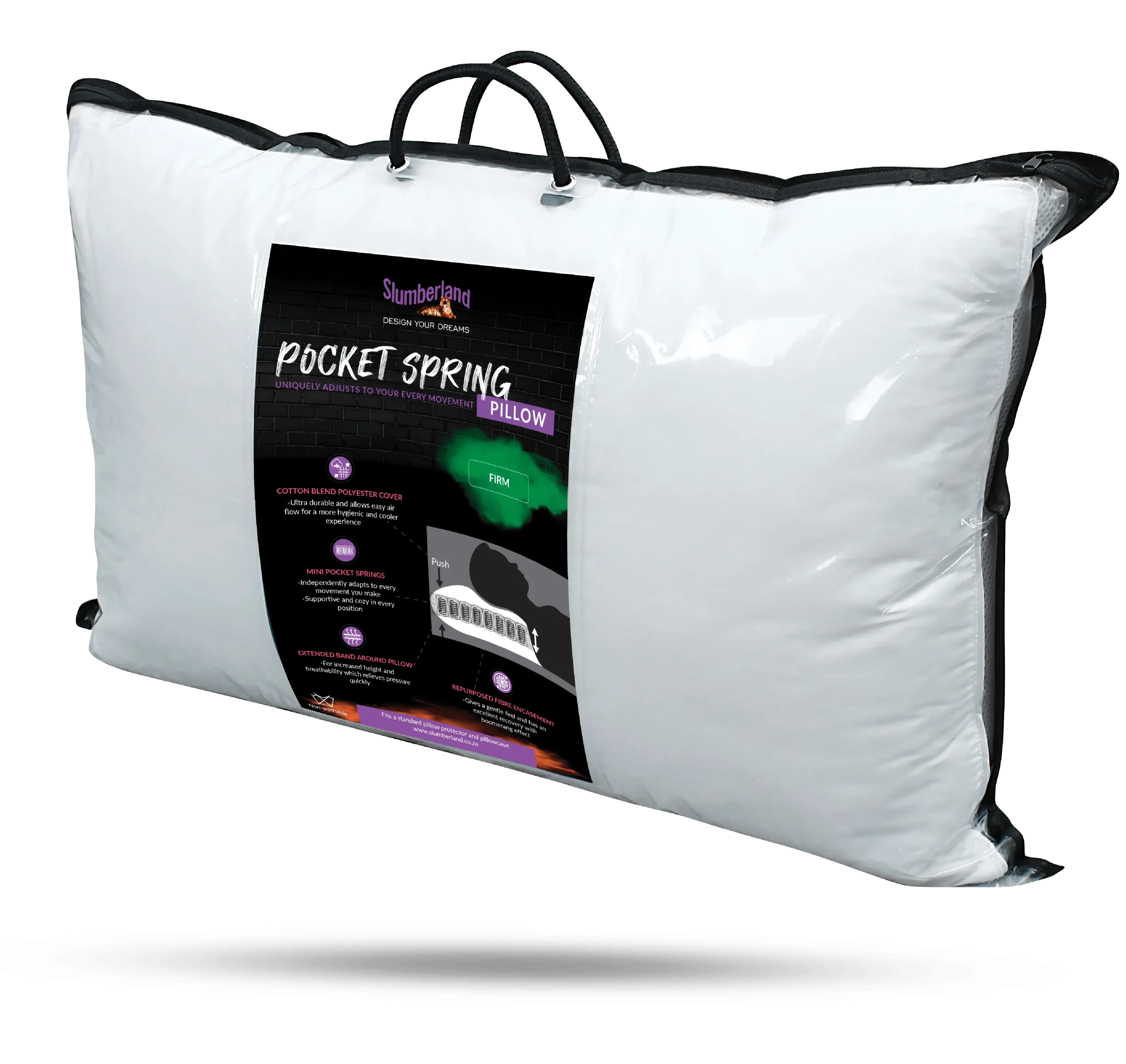 Sleep better with the Slumberland Pocket Spring Pillow—cooling comfort, lasting durability, and superior hygiene for peaceful nights.